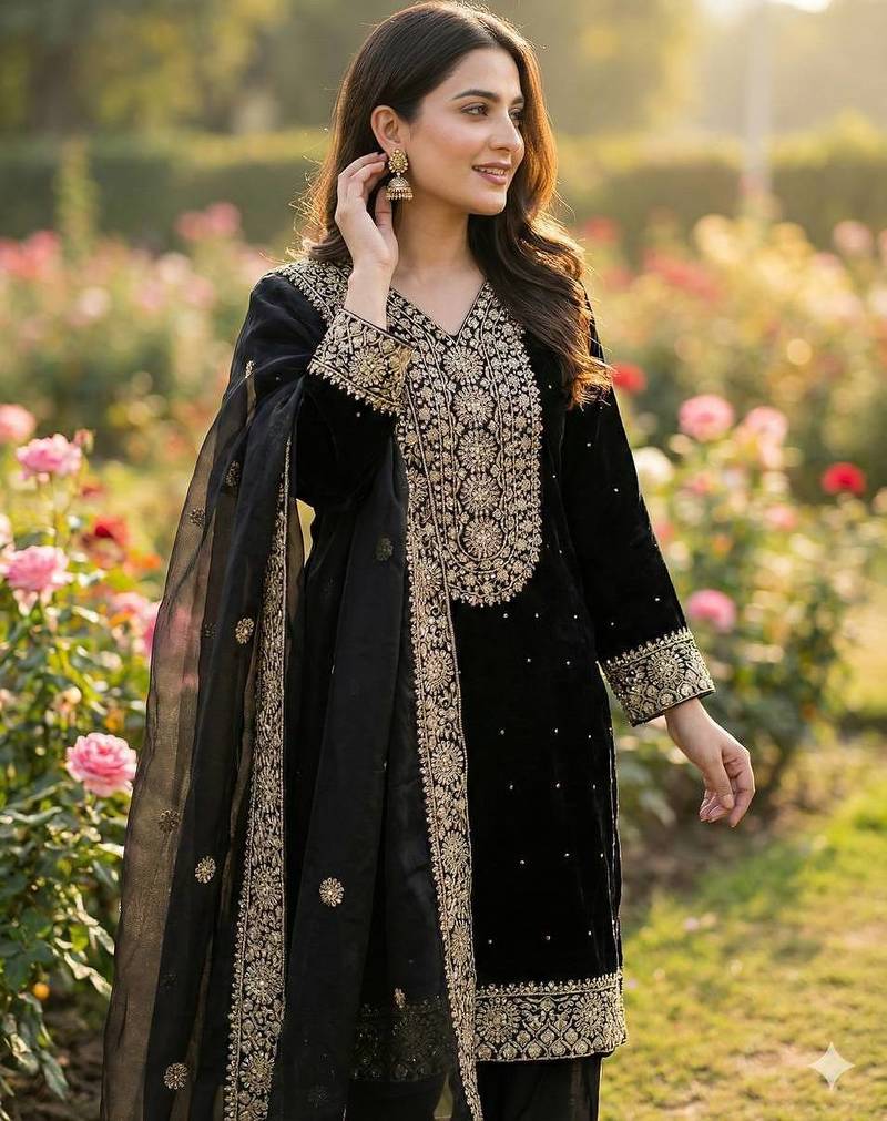 | Product Name | Black Color Fendy Silk Embroidery Work Wedding Wear Salwar Suit | |