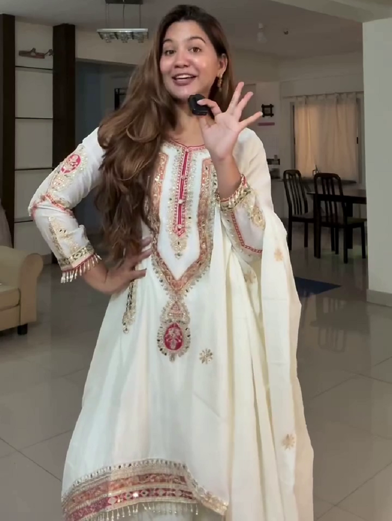 | Product Name | Cream Color Chinnon Silk Party Wear Trending Plazo Set | |