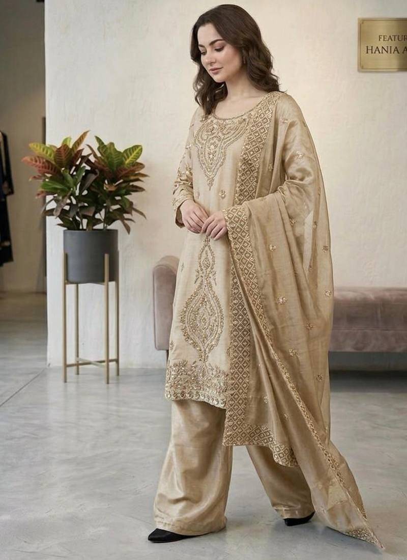 | Product Name | Cream Color Gimmychu Silk Embroidery Work Wedding Wear Salwar Suit | |