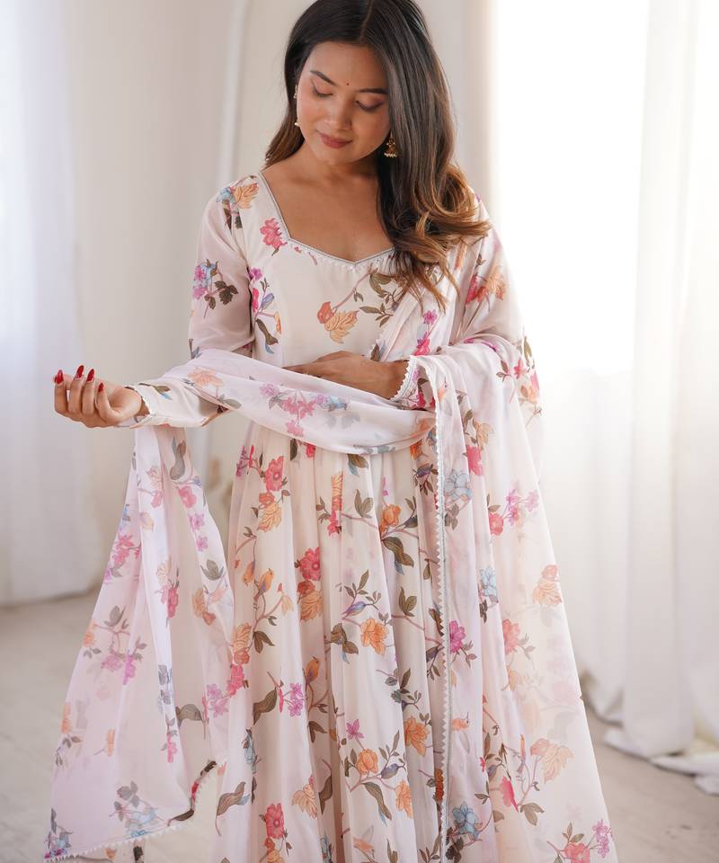 | Product Name | Cream Color Soft Organza Silk Digital Printed Party Wear Gown | |