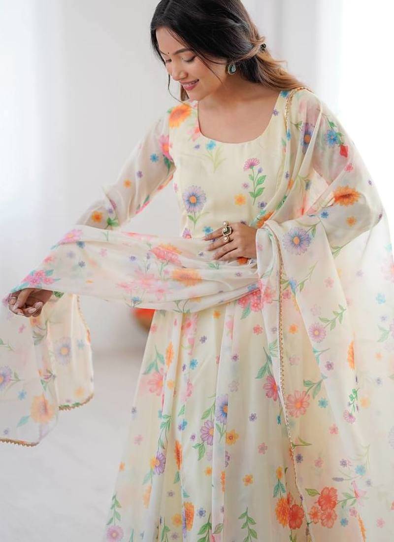 | Product Name | Cream Color Soft Organza Silk Digital Printed Party Wear Gown | |