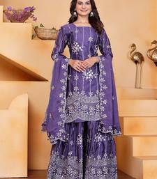 Lavender color chinnon silk wedding wear trending plazo set stitched
