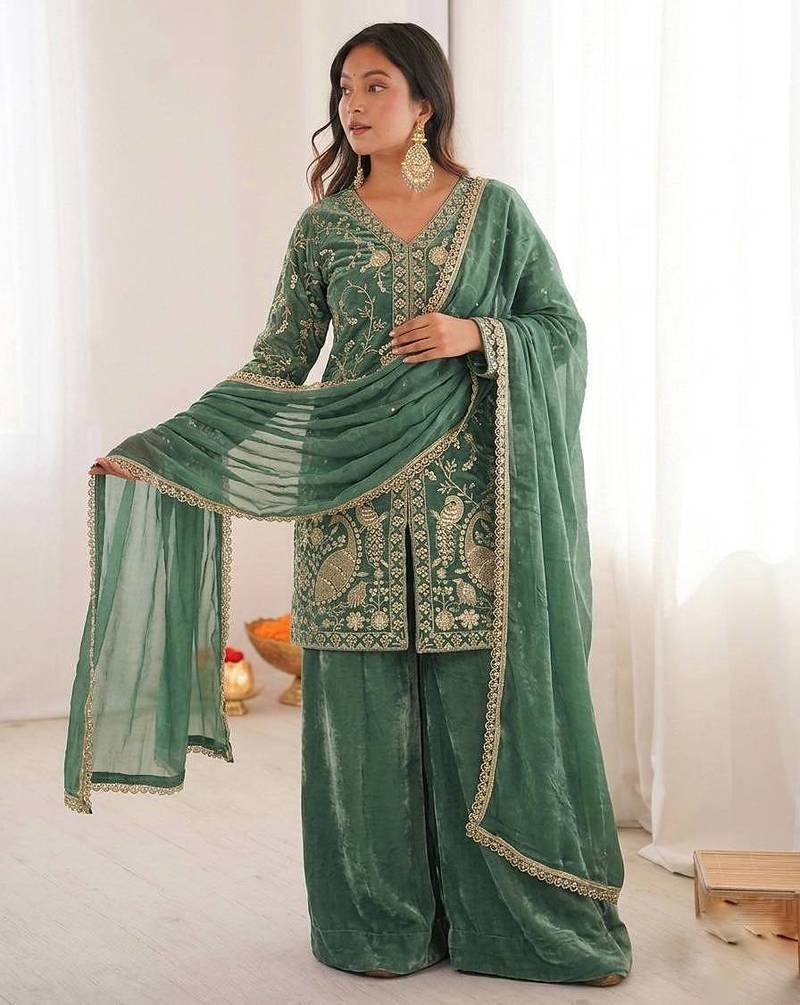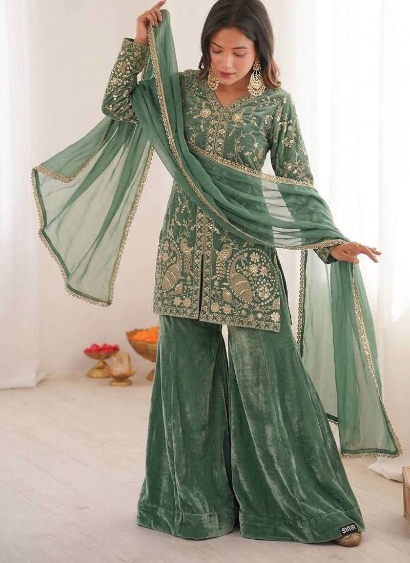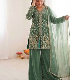 Light green color fendy silk embroidery work wedding wear salwar suit stitched