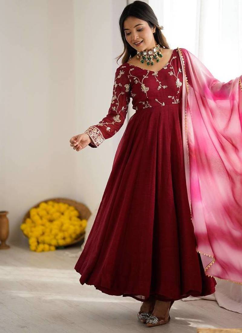 Product Name | Maroon Color Crunchy Silk Embroidery Work Gown | |