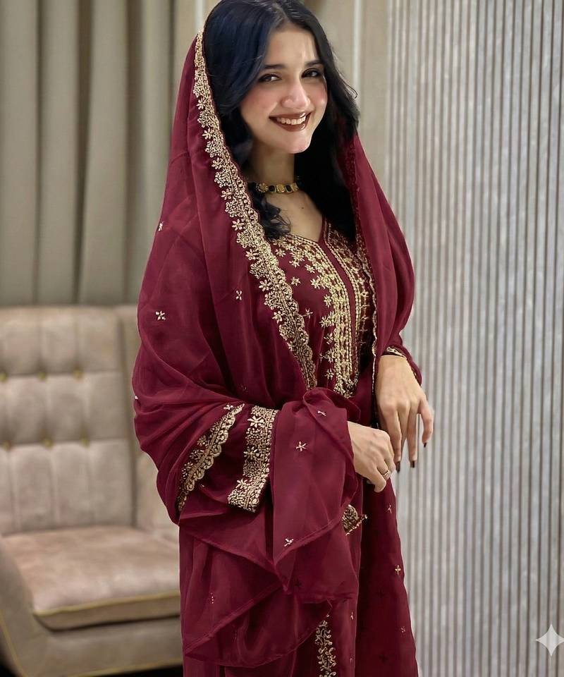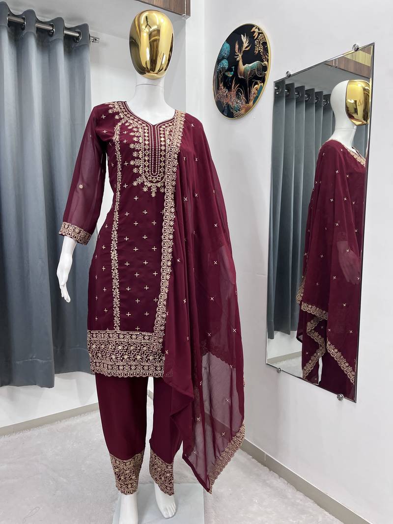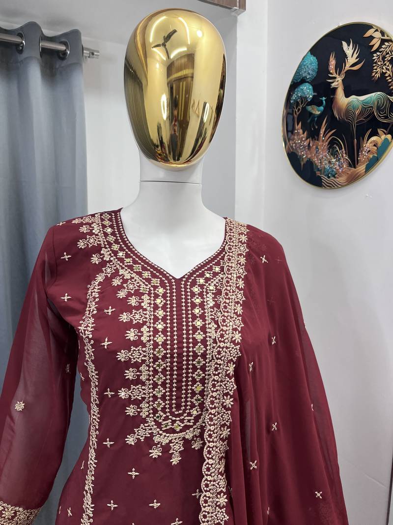 | Product Name | Maroon Color Faux Georgette Embroidery Work Party Wear Salwar Suit | |