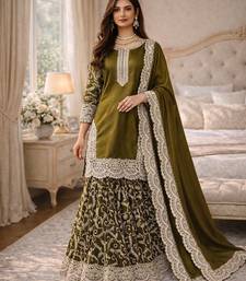 | • | Dupatta | : | Color- Mehendi / Fabric- Silk |