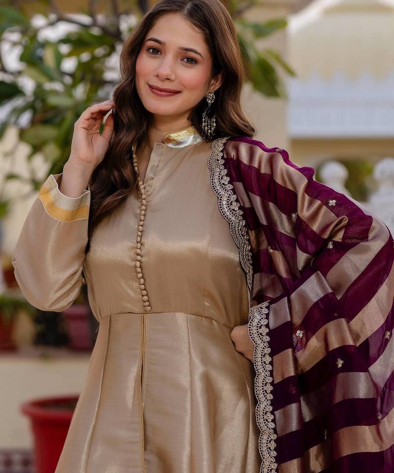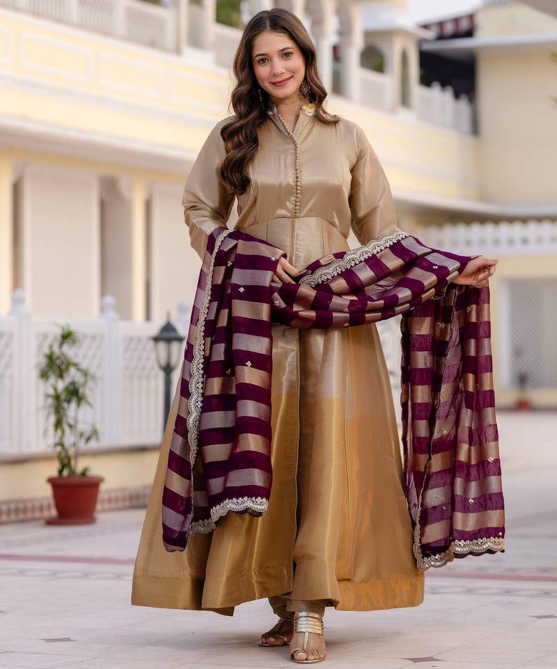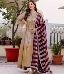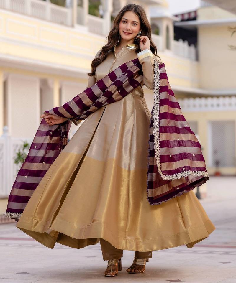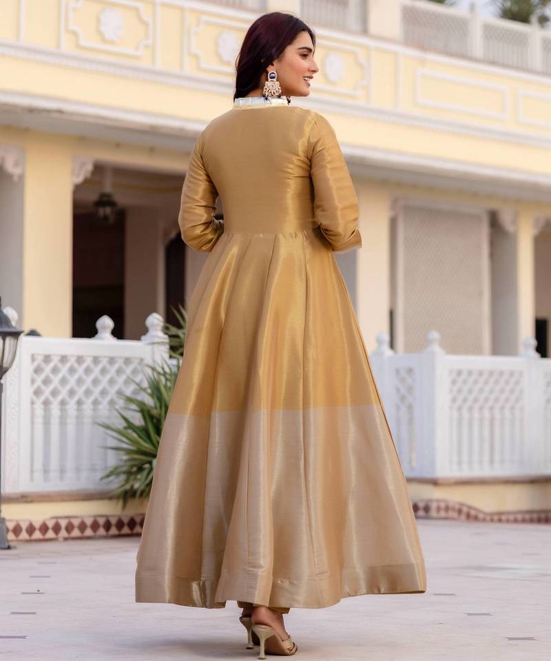 Multi color pure banarasi viscose designer long gown stitched