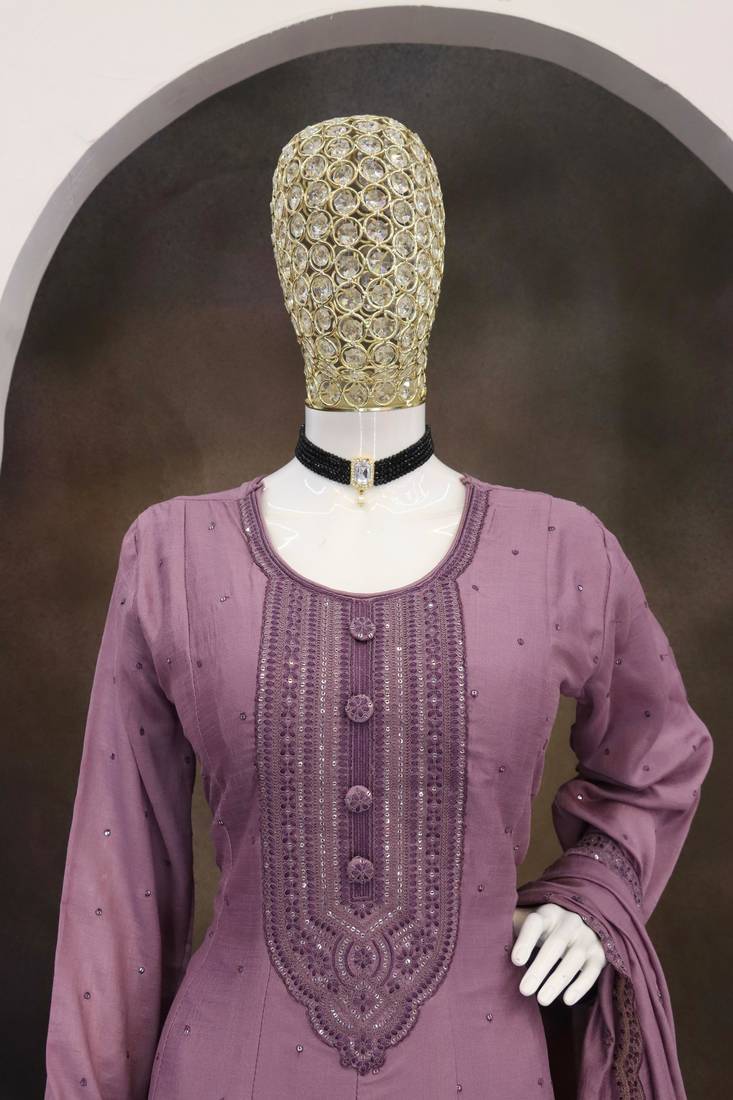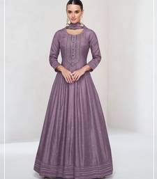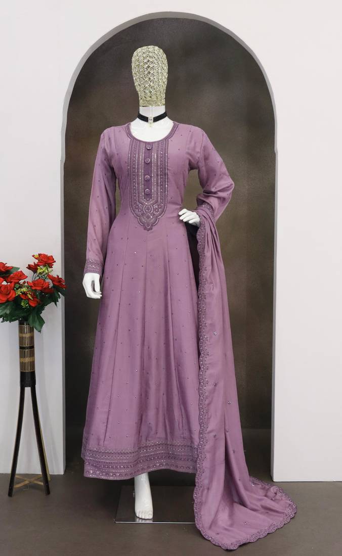 Onion color heavy vichitra silk embrodiery work long gown stitched