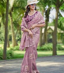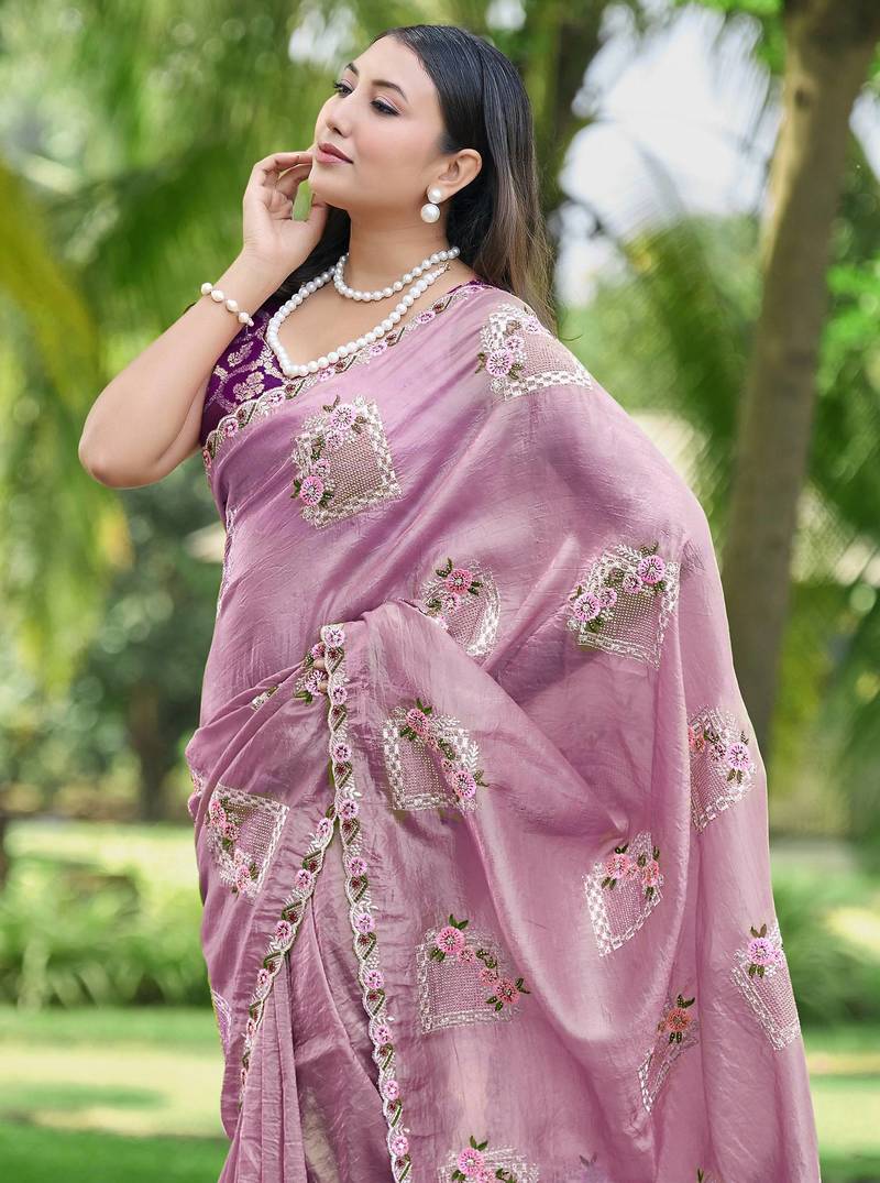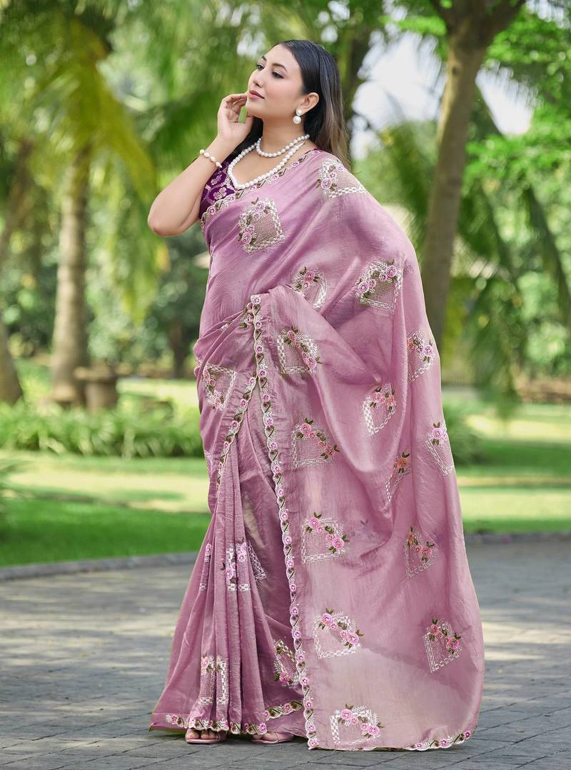 Onion color pure papel silk heavy embroidery work wedding wear saree
