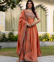 | Product Name | Orange Color Vichitra Silk Designer Party Wear Long Gown | |