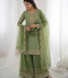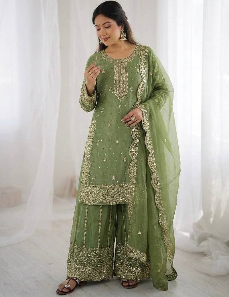 Parrot green color fendy silk embroidery work wedding wear salwar suit stitched