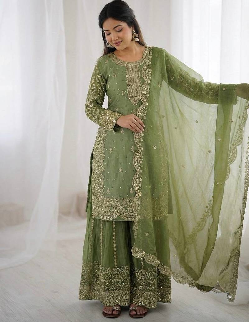 Parrot green color fendy silk embroidery work wedding wear salwar suit