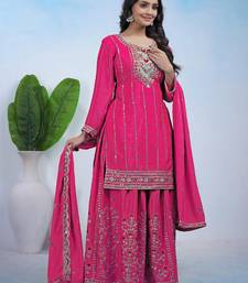 Pink color chinnon silk wedding wear trending plazo set stitched