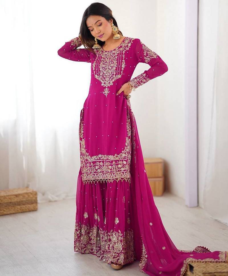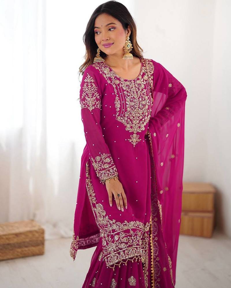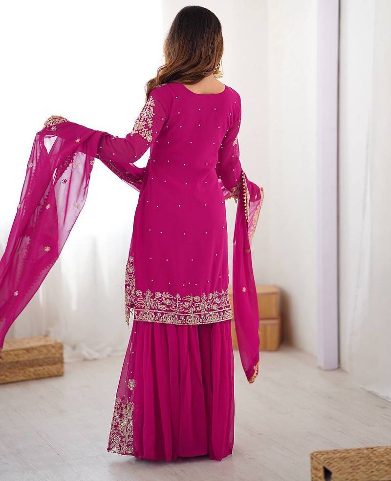 | Product Name | Pink Faux Georgette Embroidery Sharara Set | |