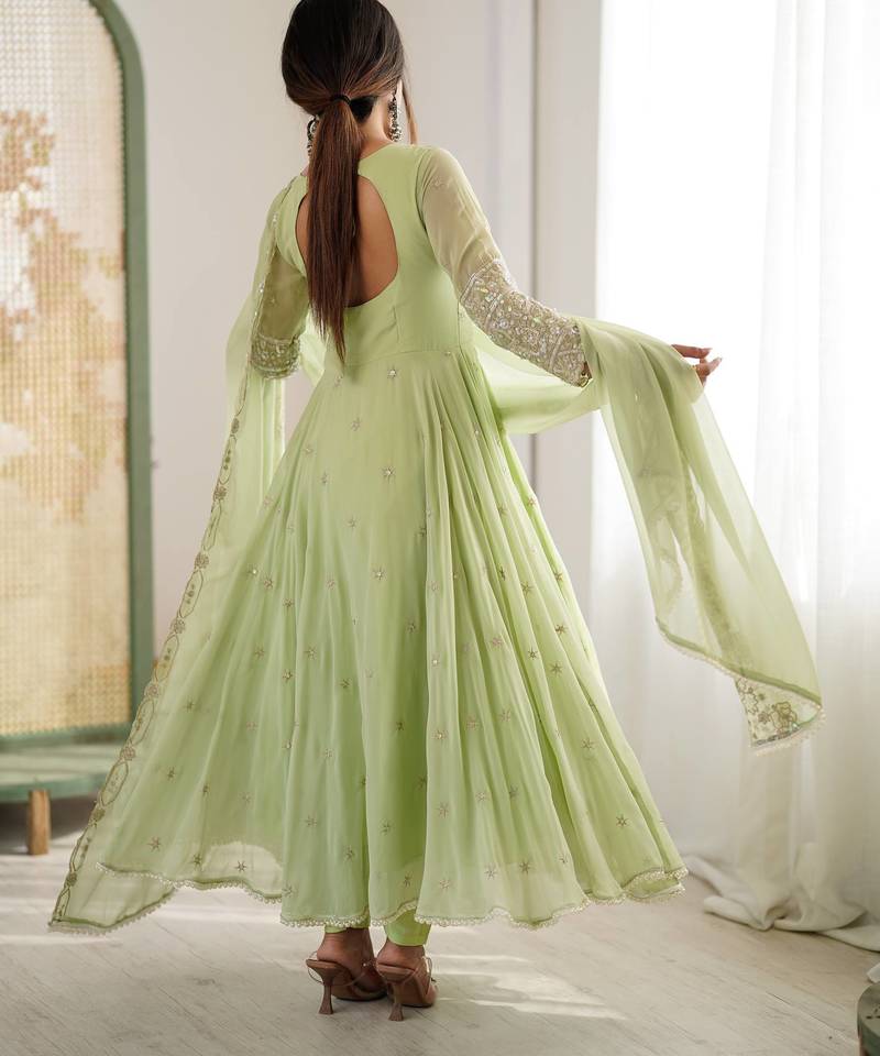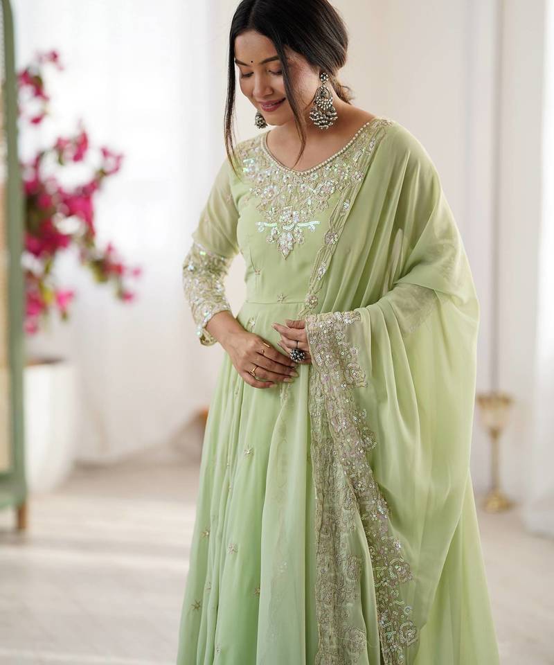 | Product Name | Pista Color Faux Georgette Embroidery Work Wedding Wear Gown | |