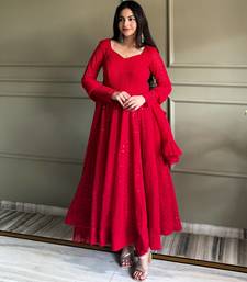 Red color faux georgette heavy embroidery work functional wear gown stitched