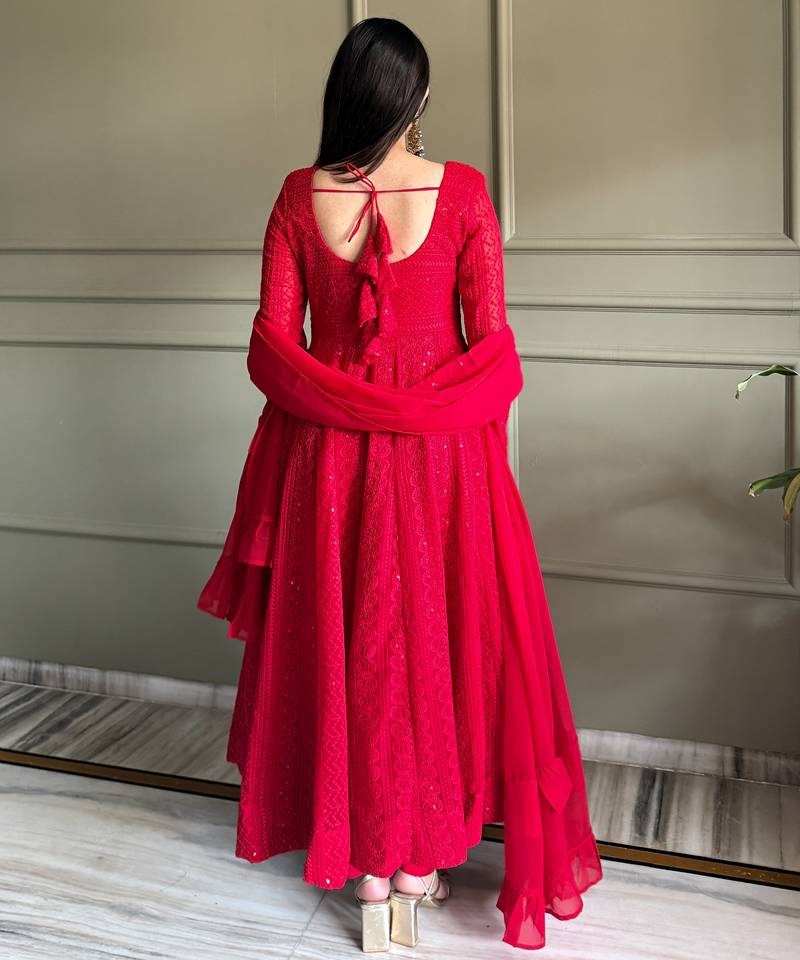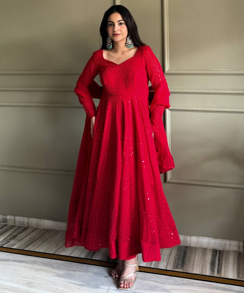 | Product Name | Red Color Faux Georgette Heavy Embroidery Work Functional Wear Gown | |