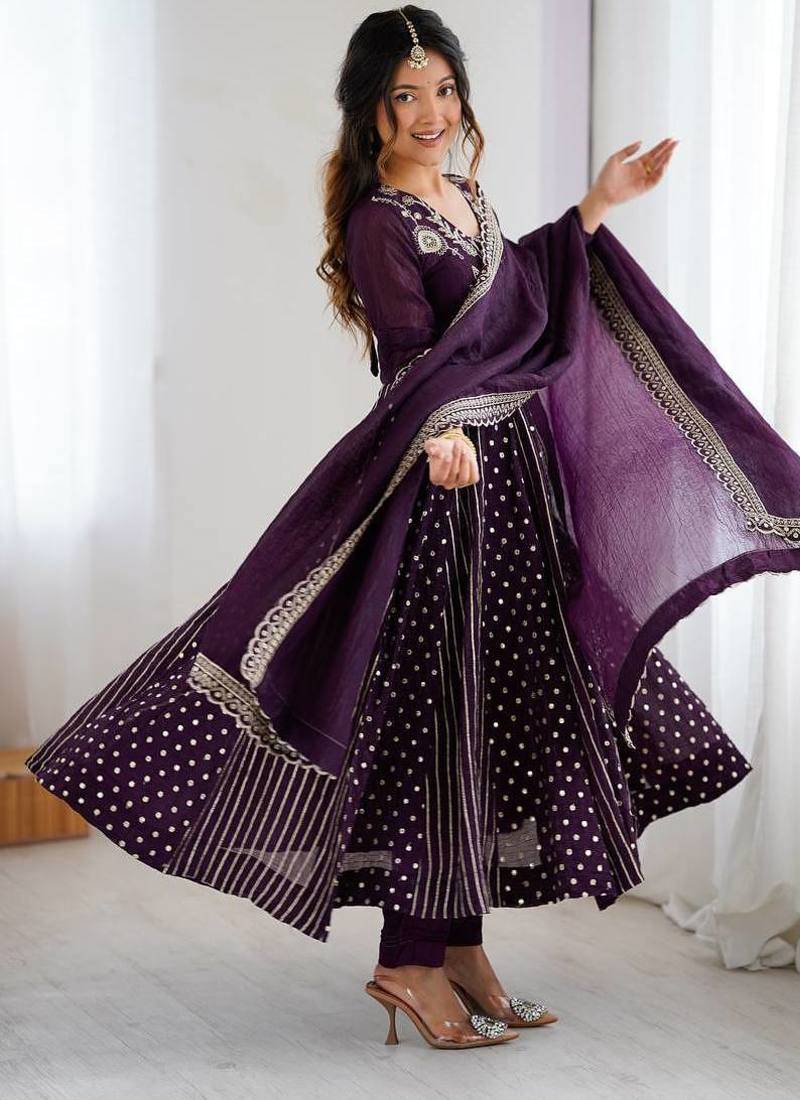 Product Name | Violet Color Heavy Crunchy Silk Embroidery Work Gown | |