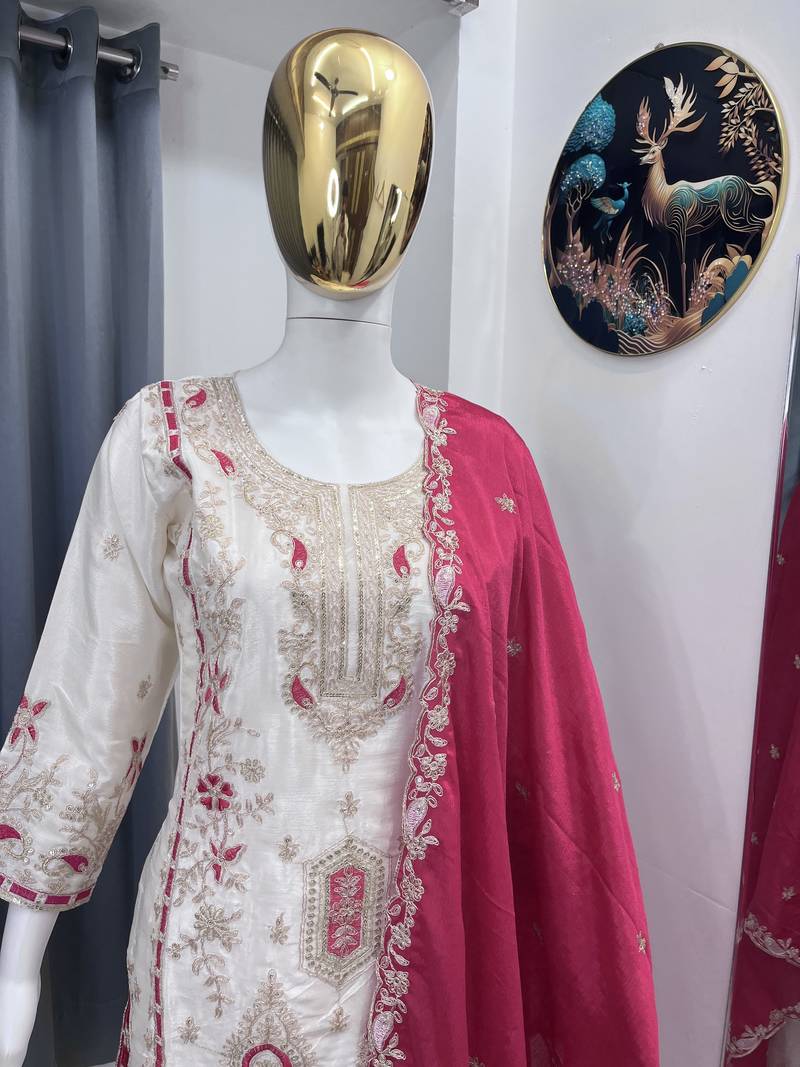 | Product Name | White Color Chinnon Silk Party Wear Trending Plazo Set | |