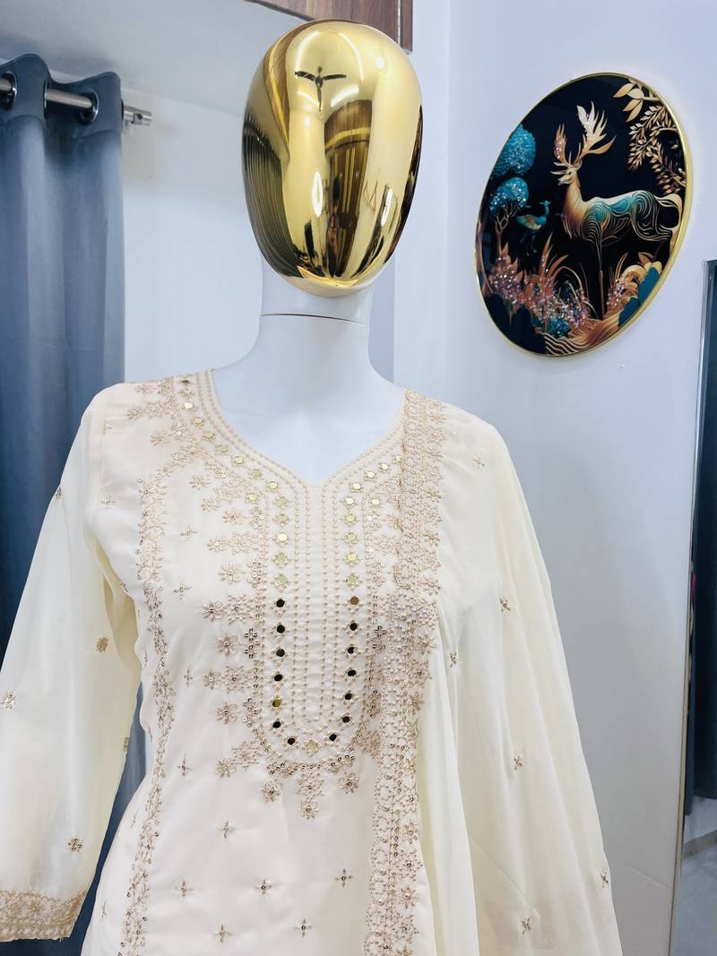 | Product Name | White Color Faux Georgette Embroidery Work Party Wear Salwar Suit | |