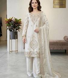 White color gimmychu silk embroidery work wedding wear salwar suit stitched