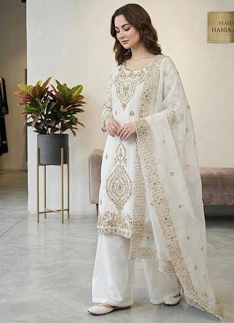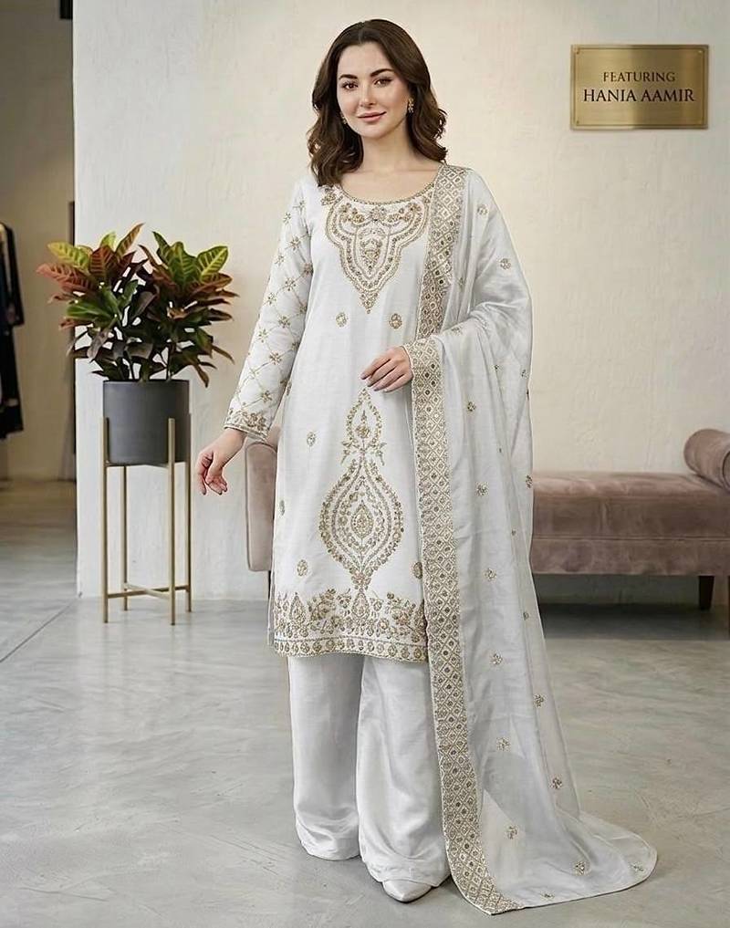 | Product Name | White Color Gimmychu Silk Embroidery Work Wedding Wear Salwar Suit | |