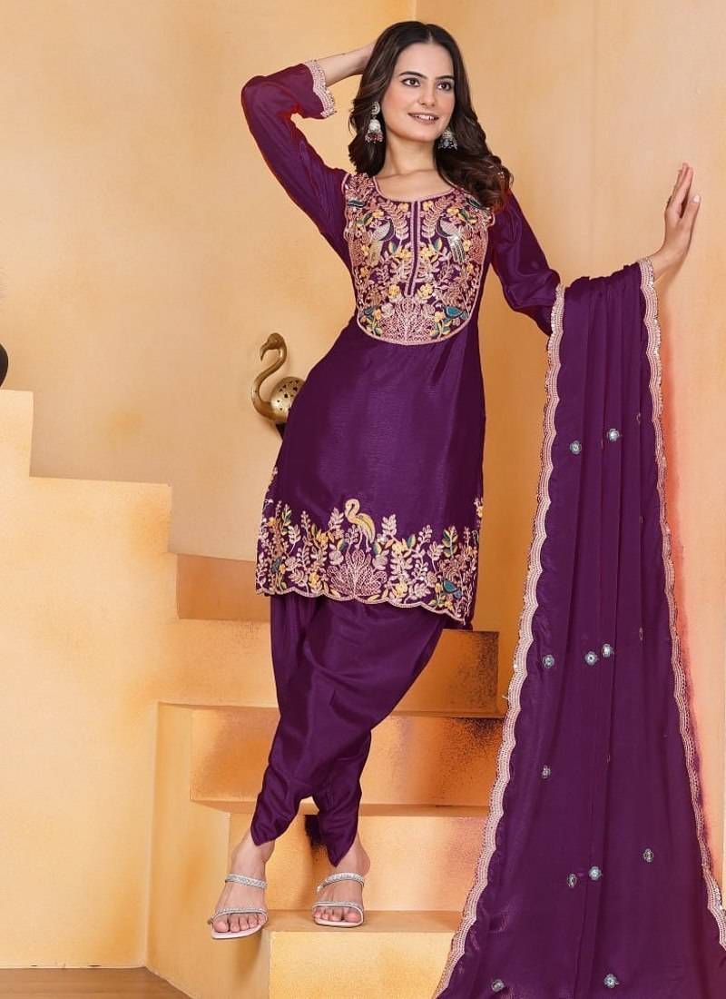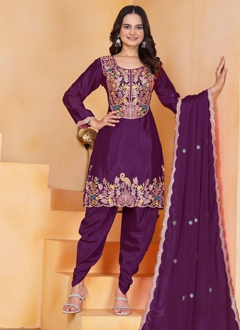 | Product Name | Wine Color Chinnon Silk Party Wear Punjabi Dhoti Suit | |