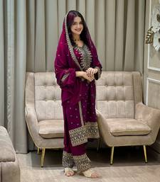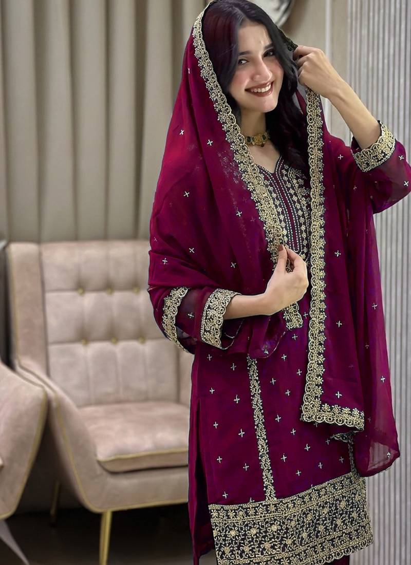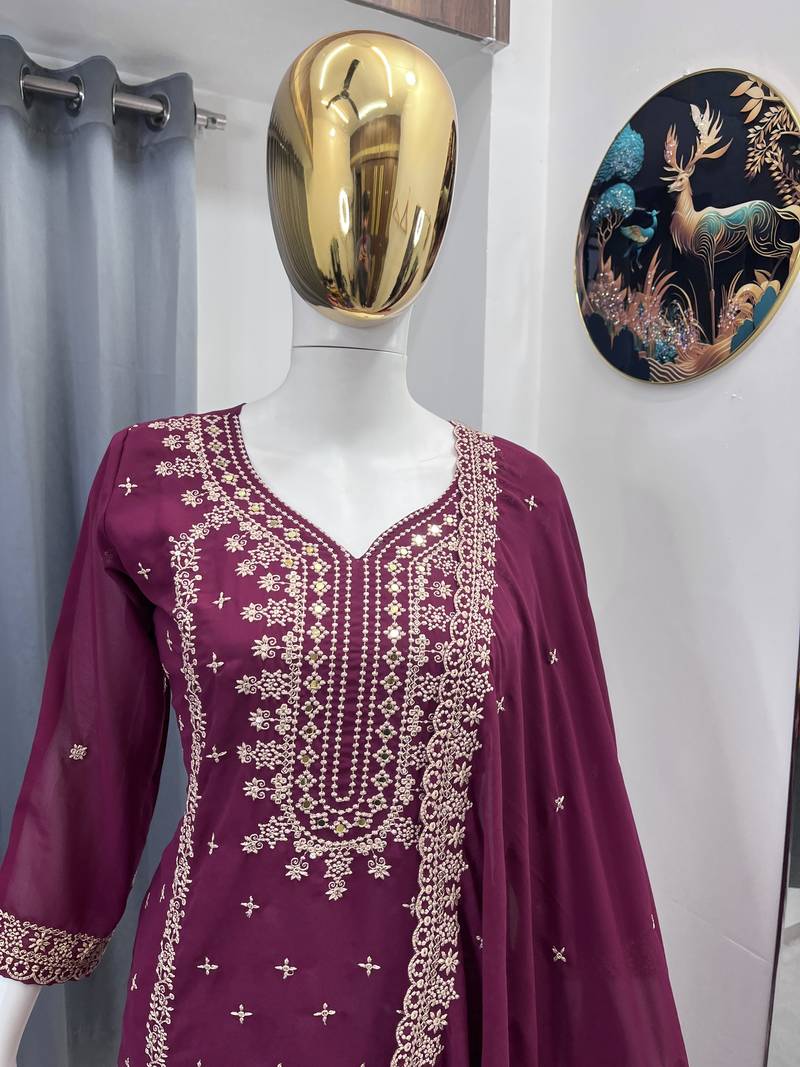 | Product Name | Wine Color Faux Georgette Embroidery Work Party Wear Salwar Suit | |
