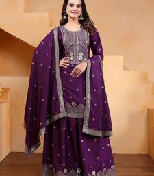 Wine color natural creap silk wedding wear trending plazo set stitched