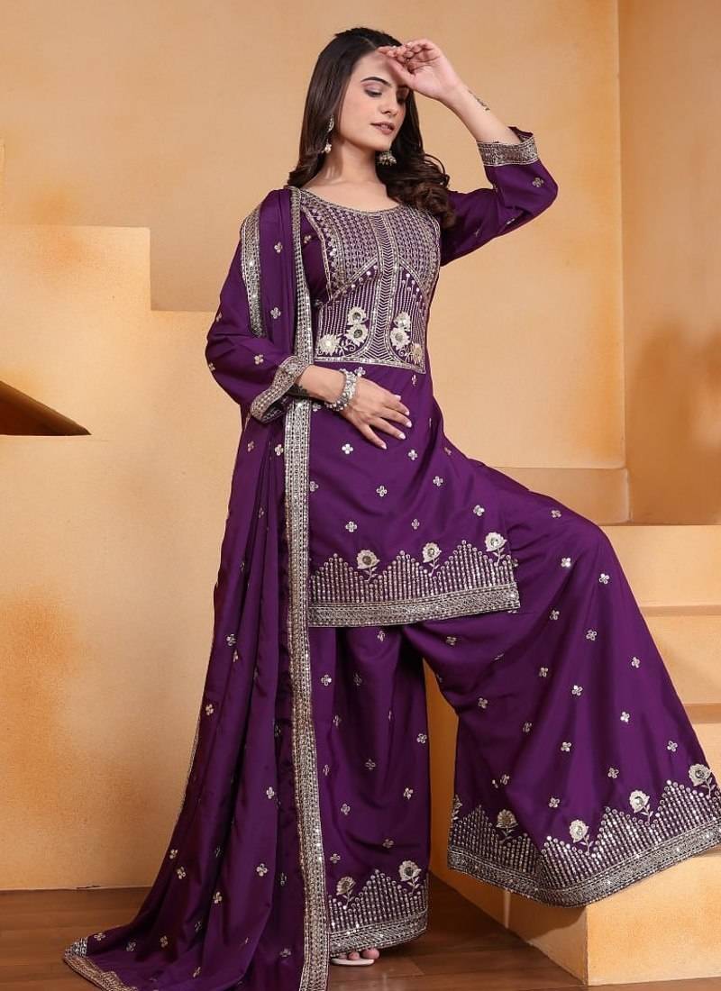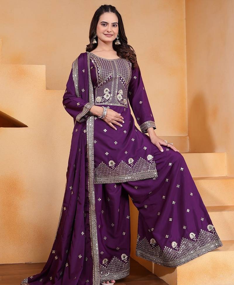 | Product Name | Wine Color Natural Creap Silk Wedding Wear Trending Plazo Set | |