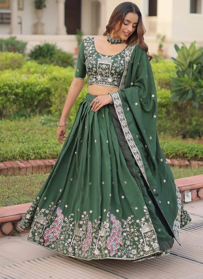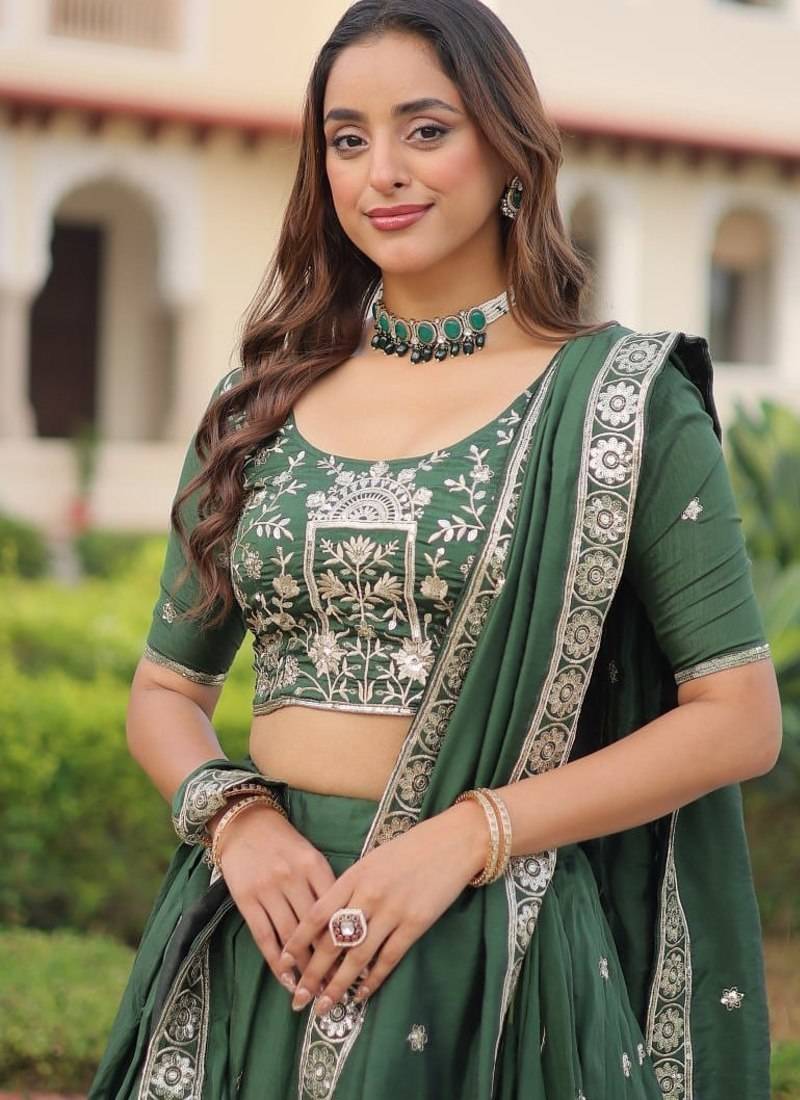 Womens new fancy vichitra silk with sequins, zari & thread embroidered work lehenga choli,dupatta set