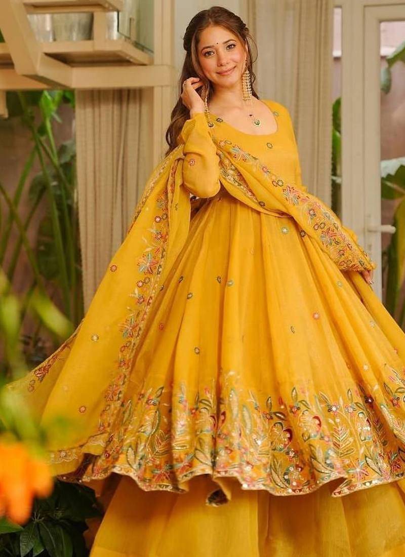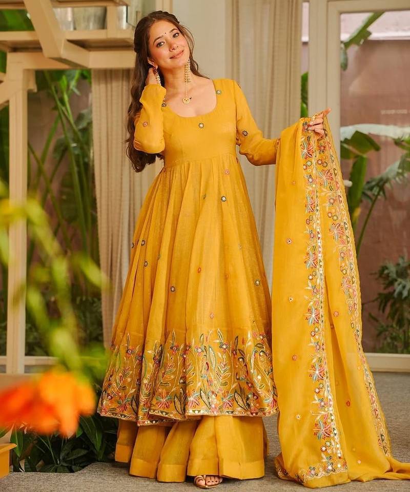 | Product Name | Yellow Color Crunchy Silk Fancy Wedding Wear Plazo Set | |