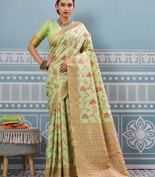 Parrot green colour flour printed silk saree with blouse wedding wear saree