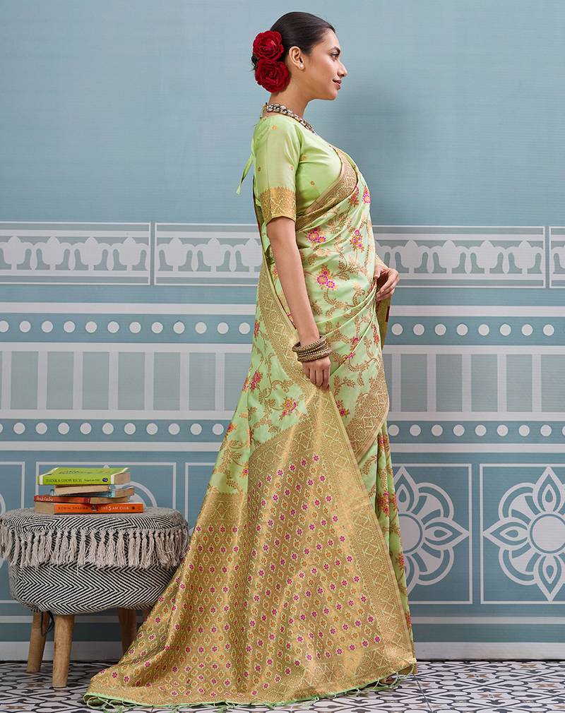 | Product Name | Parrot Green Colour Flour Printed Silk Saree With Blouse Wedding Wear Saree | |