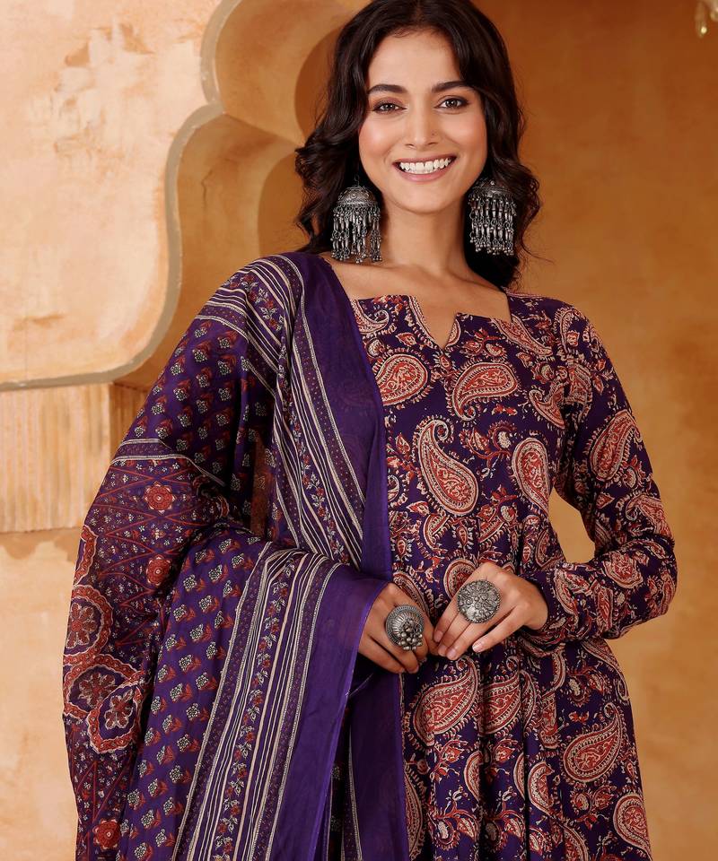 | Product Description | """If You Love Ethnic Wear, Then This Stitched Ethnic Set Is For You"" This Gorgeous Women's Printed Work Square Neck Rayon Blend Fabric Kurta Pant Set Comes With Dupatta. Kurta Details: This Paisley Print Work Kurta Features Flared Shape With Square Neck And Rayon Blend Fabric With Full Sleeves And Printed Work All Over. The Calf Length Kurta Is Made From High Quality Machine Weave Rayon Blend Fabric Making It Comfortable And Stylish. The Kutra Length Is 44 Inches, And The Kurta Bust Size Is Up To 44 Inches. Pant Details: These Solid Rayon Fabric Pant Are Full Elasticated At The Waistband And Feature A Slip On Closure. The Waist Size Accommodates Up To 37 Inches, And The Pant Length Is 38 To 39 Inches. Dupatta Details: This Set Also Comes With Printed Work Dupatta Made From Chanderi Cotton Fabric. The Length Of The Material Is 2.25 M."" This Ethnic Set Is Perfect For Festive Occasions And Is Guaranteed To Turn Heads. Printed Work On The Kurta Adds A Touch Of Elegance And Sophistication To The Outfit. Size & Fit: The Model In The Photo Is 5'8"" Tall And Is Wearing A Size S. Note: There May Be Slight Color Variations Due To Photography Lighting And Individual Screen Settings Material & Care: It Is Recommended To Hand Wash Or Hand Wash. Add A Touch Of Elegance To Your Wardrobe. It Can Be Worn To Festive Occasions Or Parties, Marriage Occasions, Wherever You Want To Flaunt Your Style With This Outfit. Order Yours Today And Enjoy The Comfort And Style Of This Timeless Ethnic Set." |