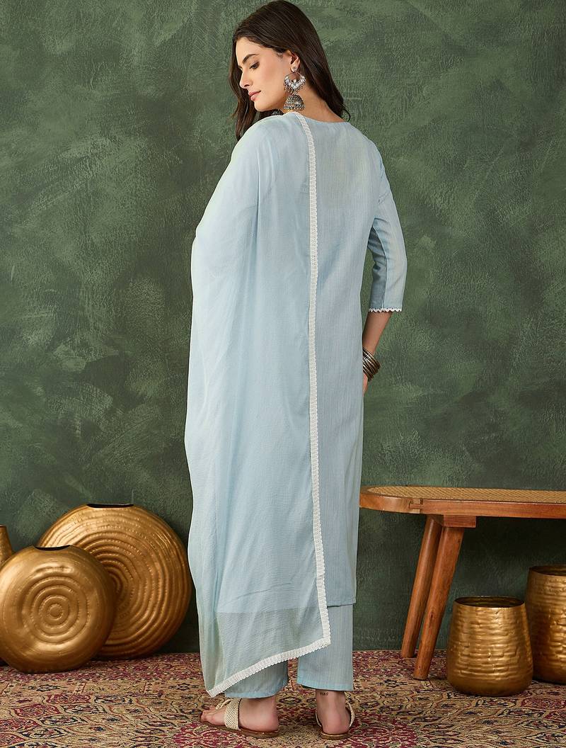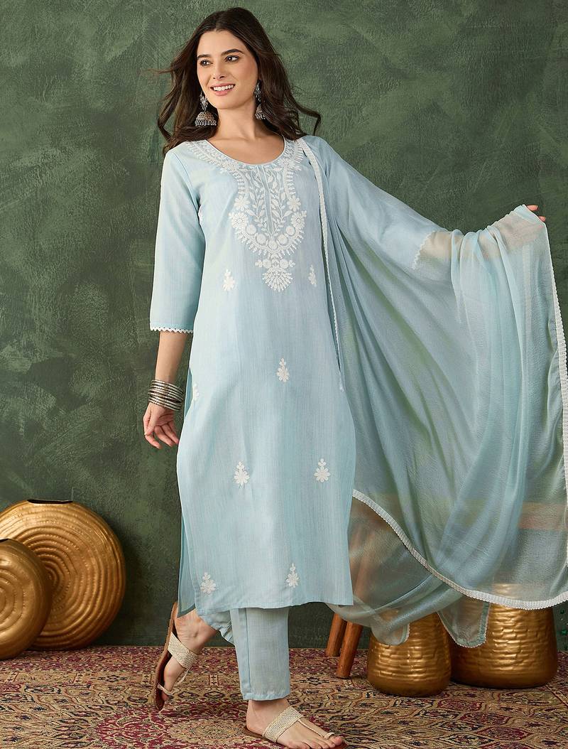 | Product Name | Women's Beautiful Thread Work Cotton Blend Fabric Straight Kurta Pant And Dupatta Set | |