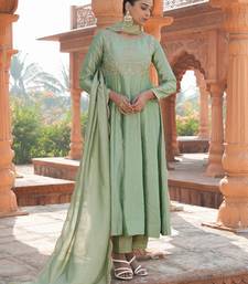 Green vichitra silk embroidered flared anarkali pant and dupatta set