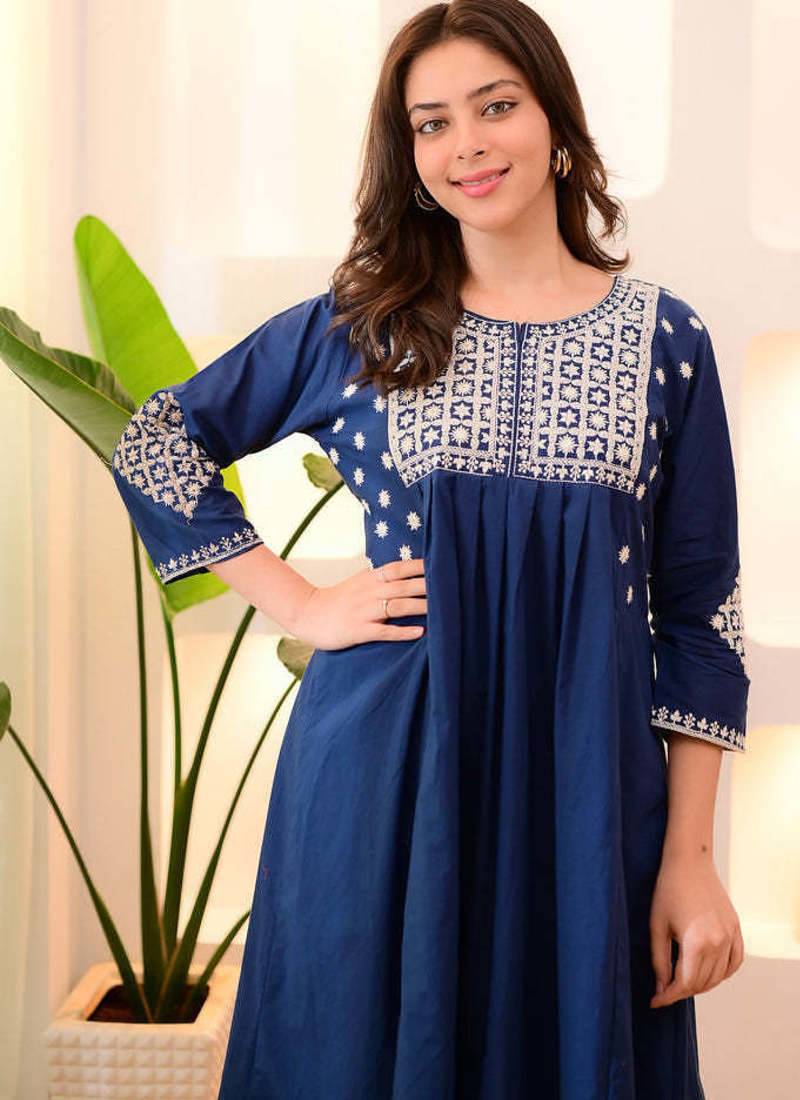 | Product Name | Blue Viscose Rayon Thread Flared Kurta Pant Set | |
