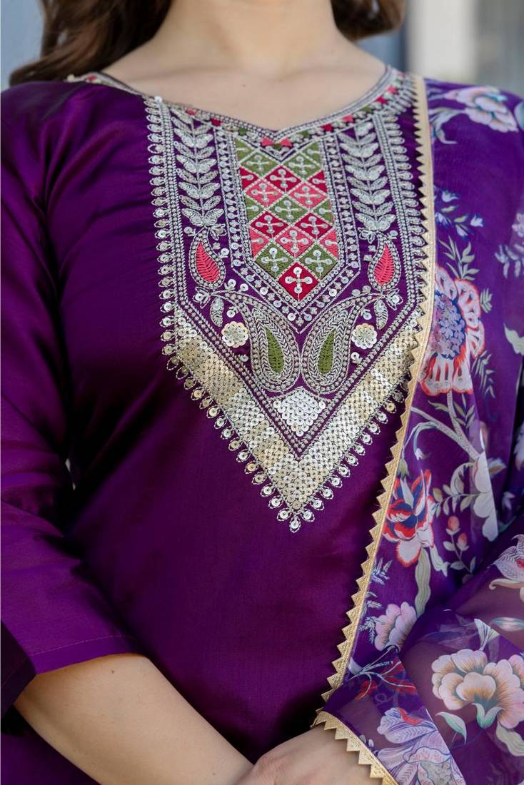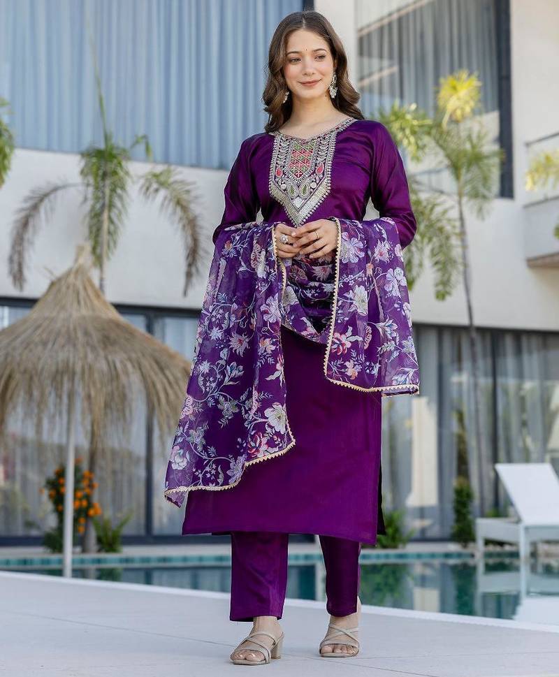 | Product Name | Women's Embroidery Work Chanderi Cotton Fabric Straight Kurta Pant And Dupatta Set | |