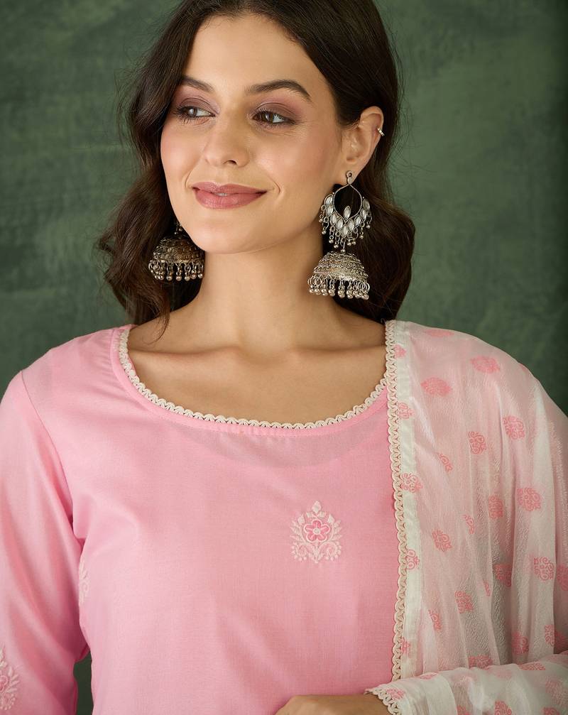 | Product Name | Women's Embroidery Work Cotton Satin Fabric Straight Kurta Sharara And Dupatta Set | |