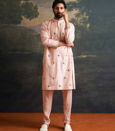 Pink embroidered pure silk kurta pajama