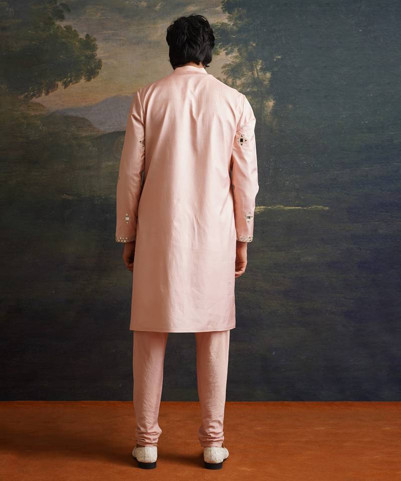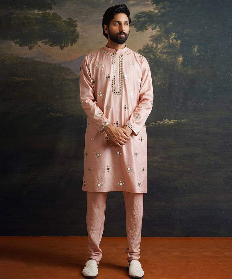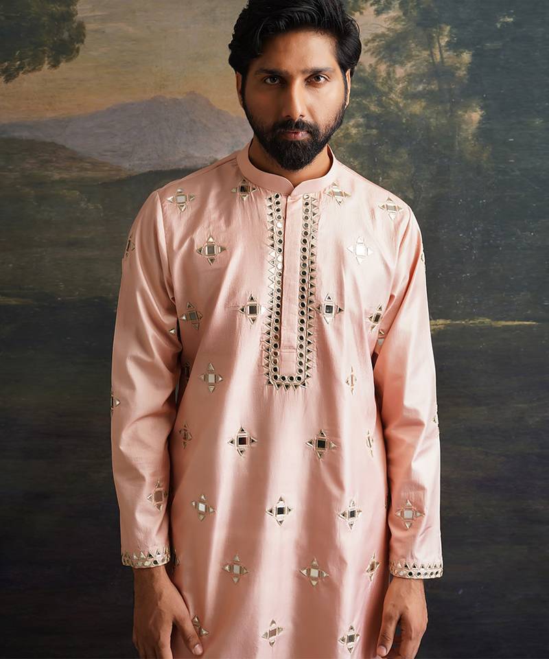 | Product Description | A Timeless Ensemble Crafted For Those Who Cherish Subtle Elegance With Artisanal Detailing. This Dusty Pink Kurta Set Features An Overall Hand Embroidered Design With Mirror Work That Adds A Soft Shimmer, Creating A Refined And Graceful Look. The Luxurious Silk Fabric Combined With Intricate Handiwork Makes It Ideal For Festive Gatherings, Celebrations, Or Elegant Daytime Events Where Sophistication Meets Tradition.
