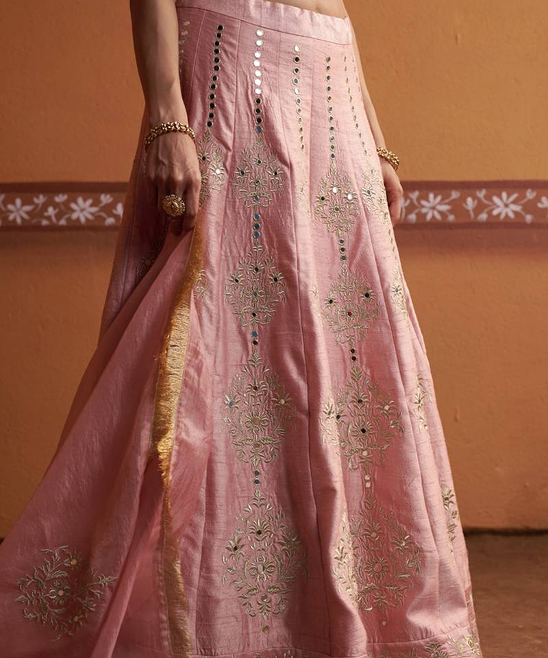 | Product Name | Pink Silk Mirror & Gold Embroidered Wedding Lehenga | |