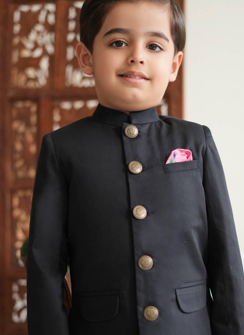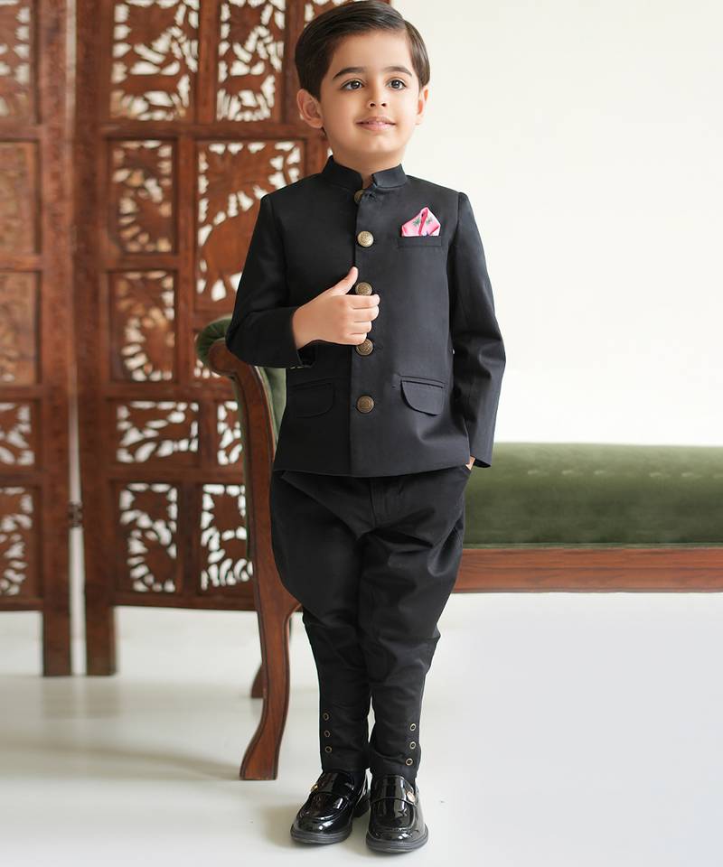 This Black Cotton Bandhgala Exudes Classic Sophistication With Its Structured Silhouette And Refined Detailing. Crafted From Breathable Cotton, It Offers Comfort Without Compromising On Style. Perfect For Festive Occasions, Formal Events, Or Cultural Gatherings, This Timeless Piece Delivers A Sharp, Elegant Look That Blends Traditional Charm With Contemporary Appeal.