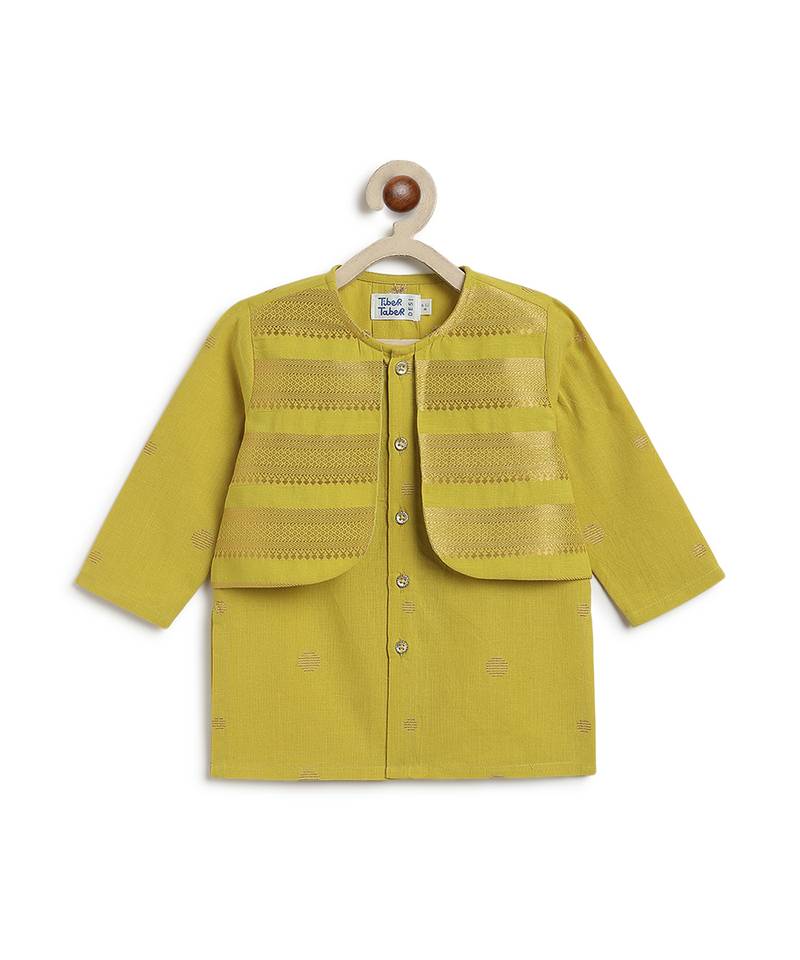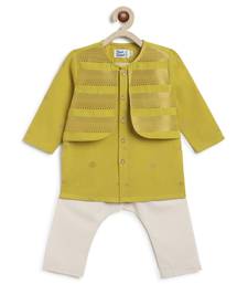 Green jacquard cotton kurta set