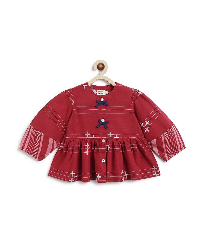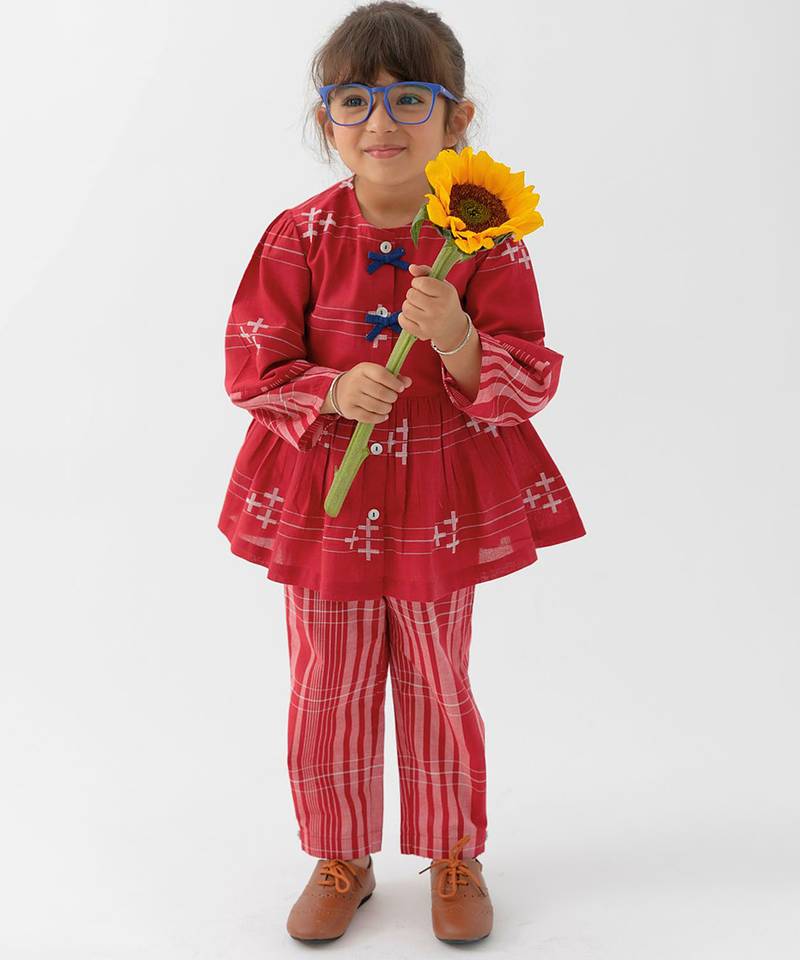 Maroon jacquard cotton co ord set
