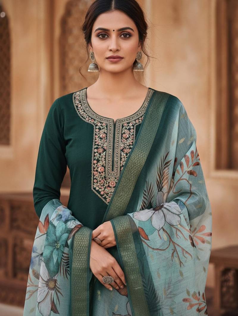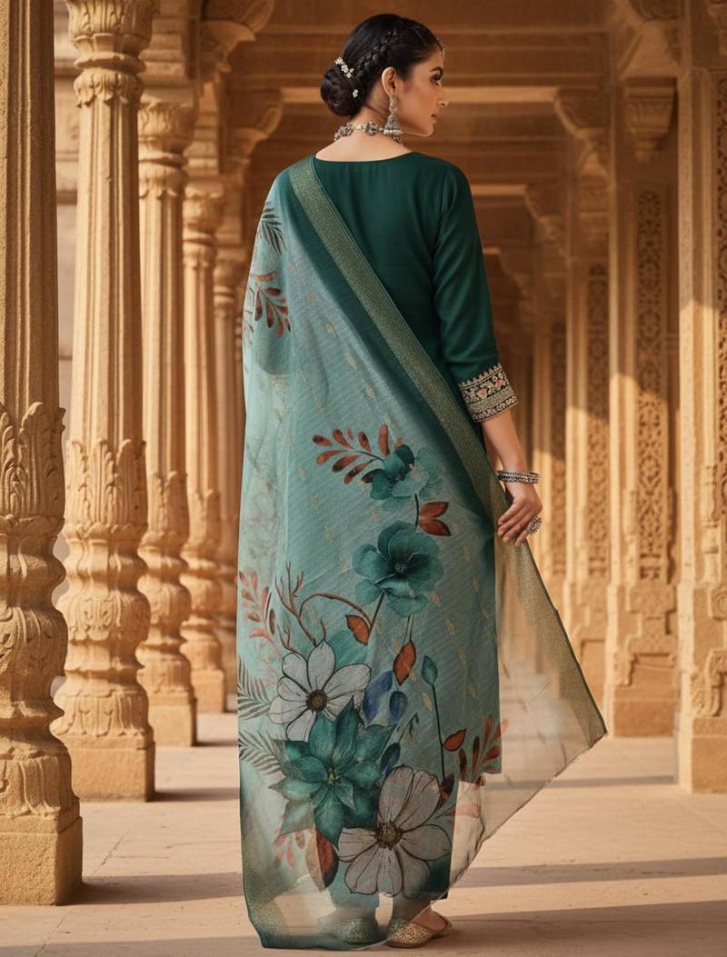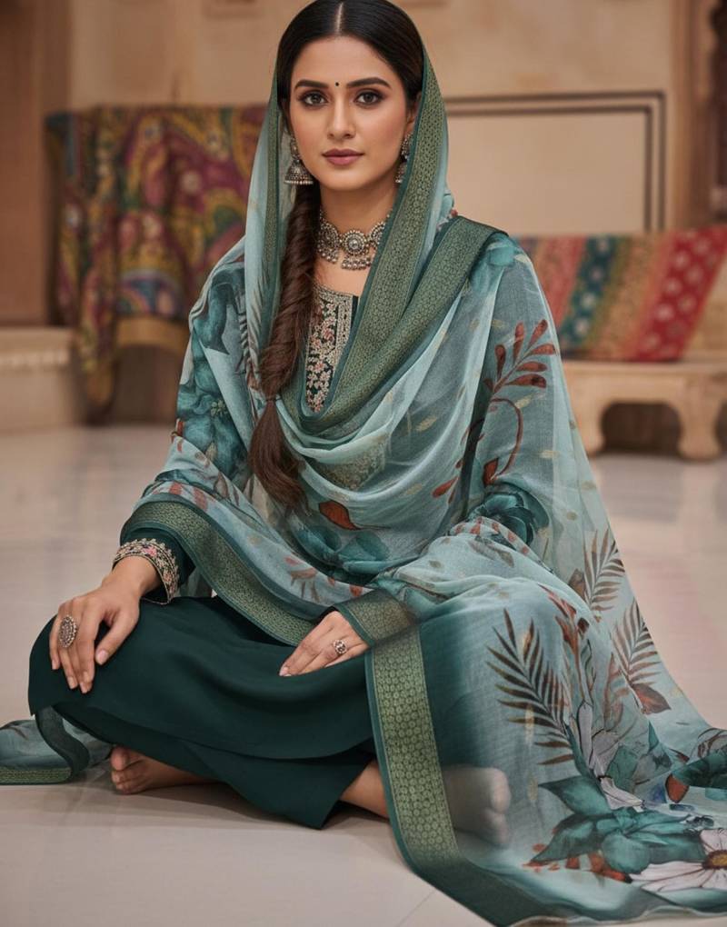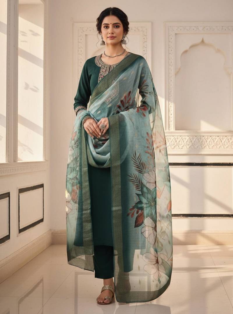Green coding sequence embroidered kurta with trouser & dupatta stitched