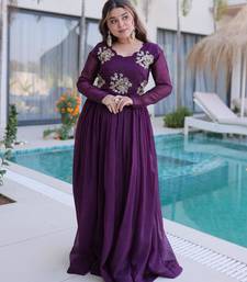 Maroon gold crush beads embroidered work flared gown with heavy dupatta stitched