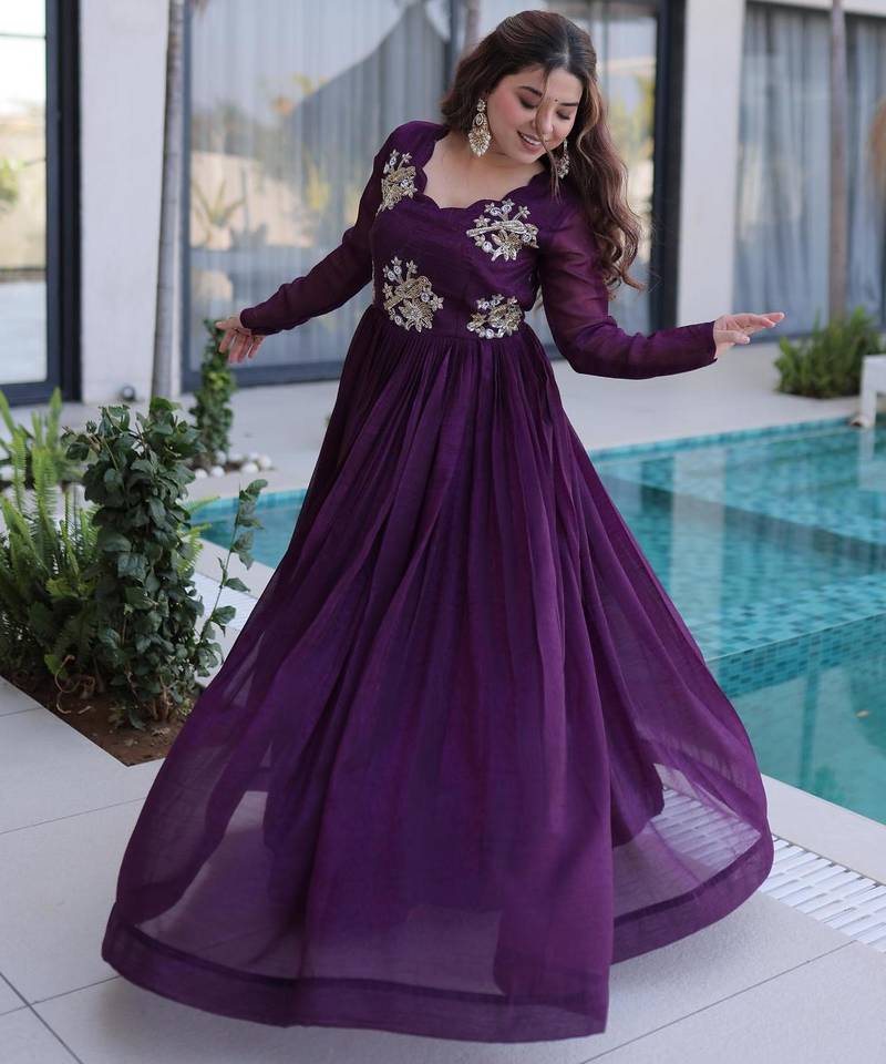 Product Name Maroon Gold Crush Beads Embroidered Work Flared Gown With Heavy Dupatta