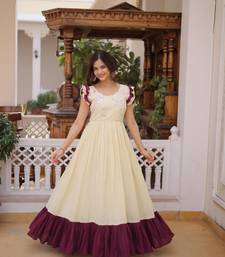 | Product Name | Off White Cotton Sequins Bead Embroidered Flared Frill Gown | |